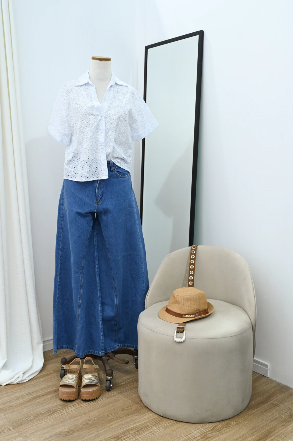 Sus medidas son: Altura: 1.67 mts. / CIntura: 60 cm. / Busto: 85 cm.